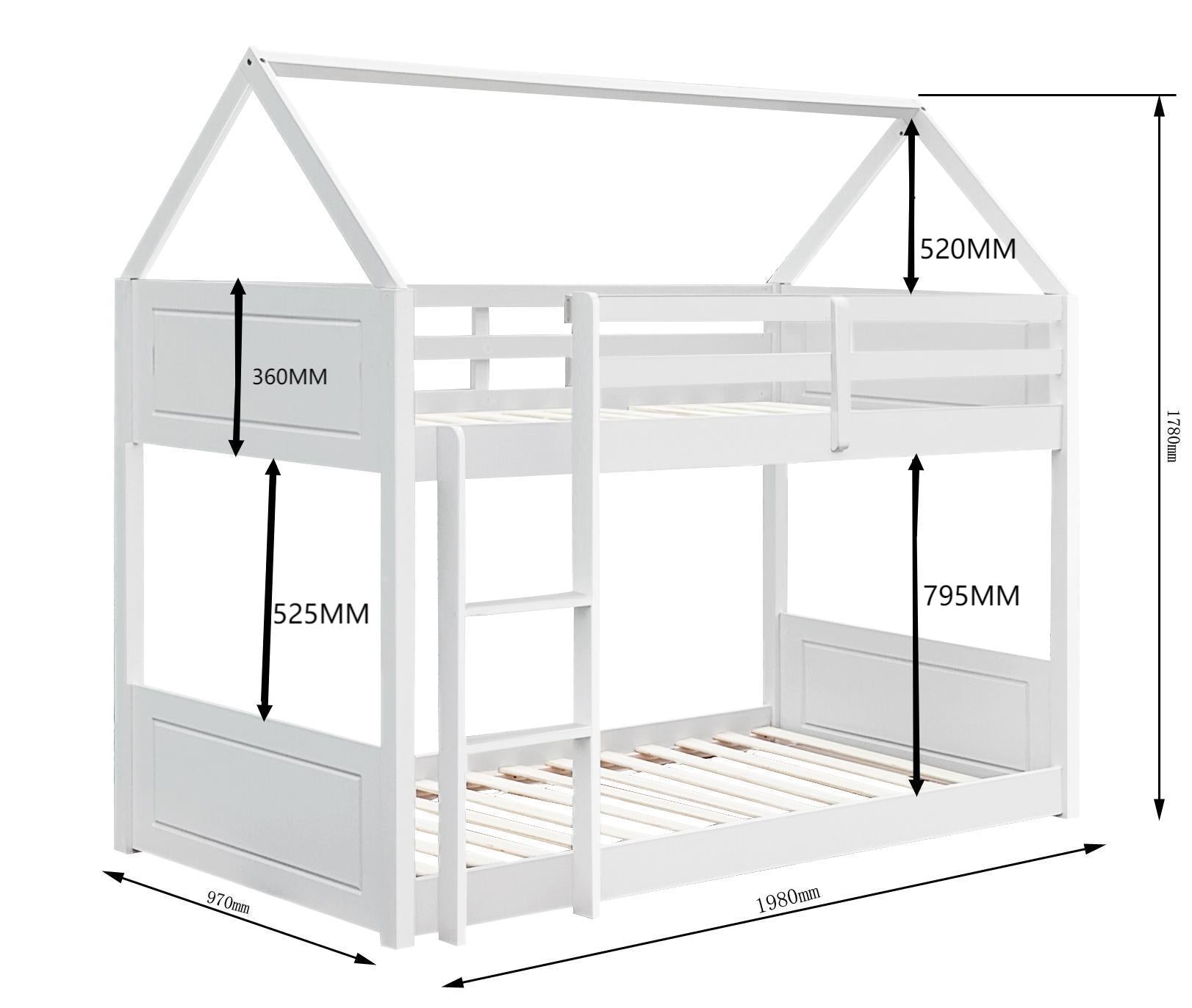 Dieses 3 Fuß lange Etagenbett im Hausstil ist in 3 Farben erhältlich und ist eine stilvolle und funktionale Ergänzung für jedes Schlafzimmer. Sein einzigartiges Design im Hausstil verleiht dem Zimmer einen Hauch von Spaß, während die robuste Konstruktion Sicherheit und Haltbarkeit gewährleistet. Perfekt für Mehrbettzimmer oder Übernachtungen mit Freunden. Machen Sie das Beste aus Ihrem Platz, ohne auf Stil zu verzichten, mit diesem 3 Fuß langen Etagenbett im Hausstil. Das einzigartige Design im Hausstil ist in 3 Farben erhältlich und verleiht jedem Schlafzimmer einen Hauch von Spaß. Es ist auf Langlebigkeit ausgelegt und bietet Sicherheit und Haltbarkeit – perfekt für Mehrbettzimmer oder Übernachtungen mit Freunden.