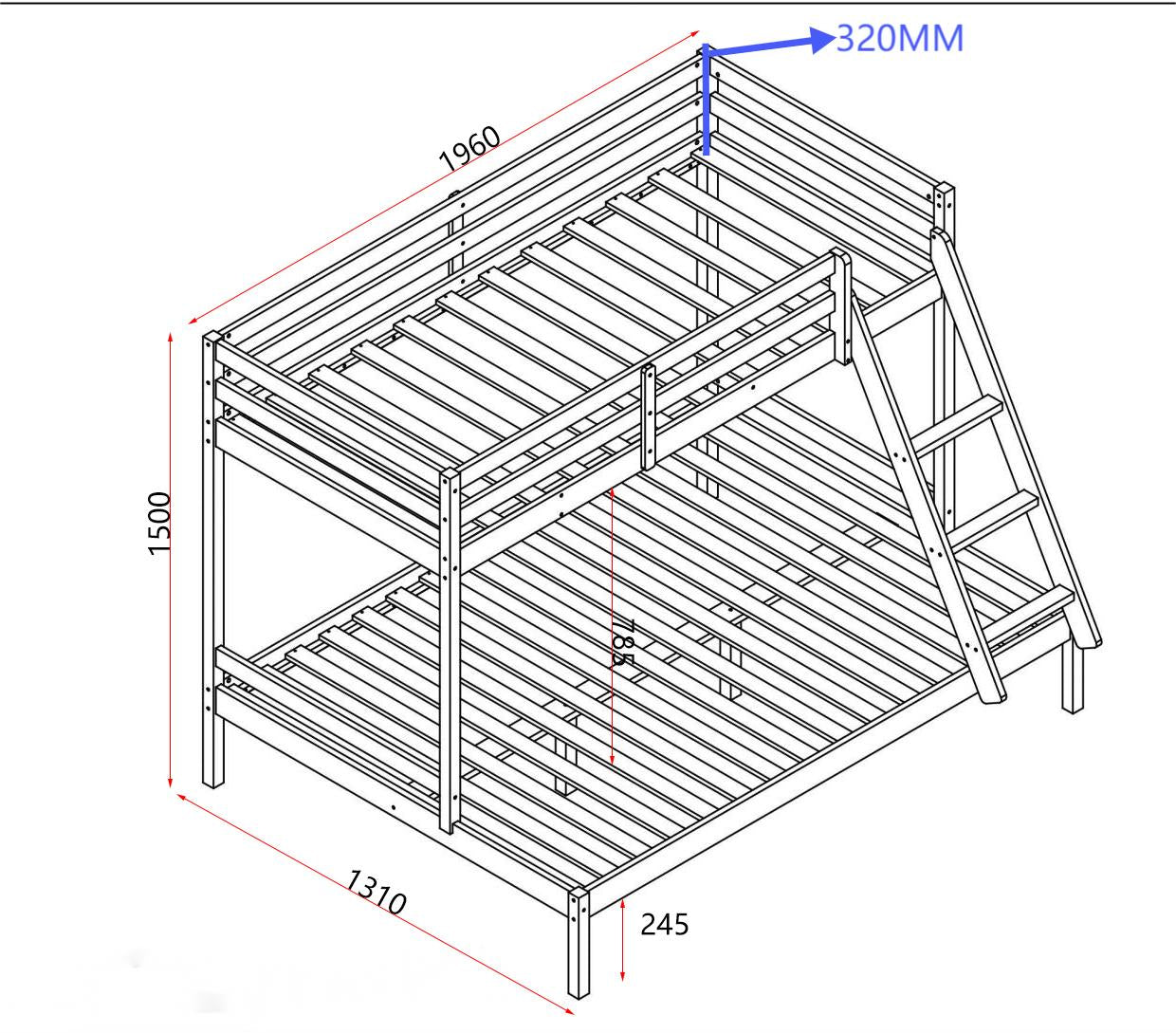 Für das obere Bett ist eine Matratze von 3 Fuß 0 erforderlich.