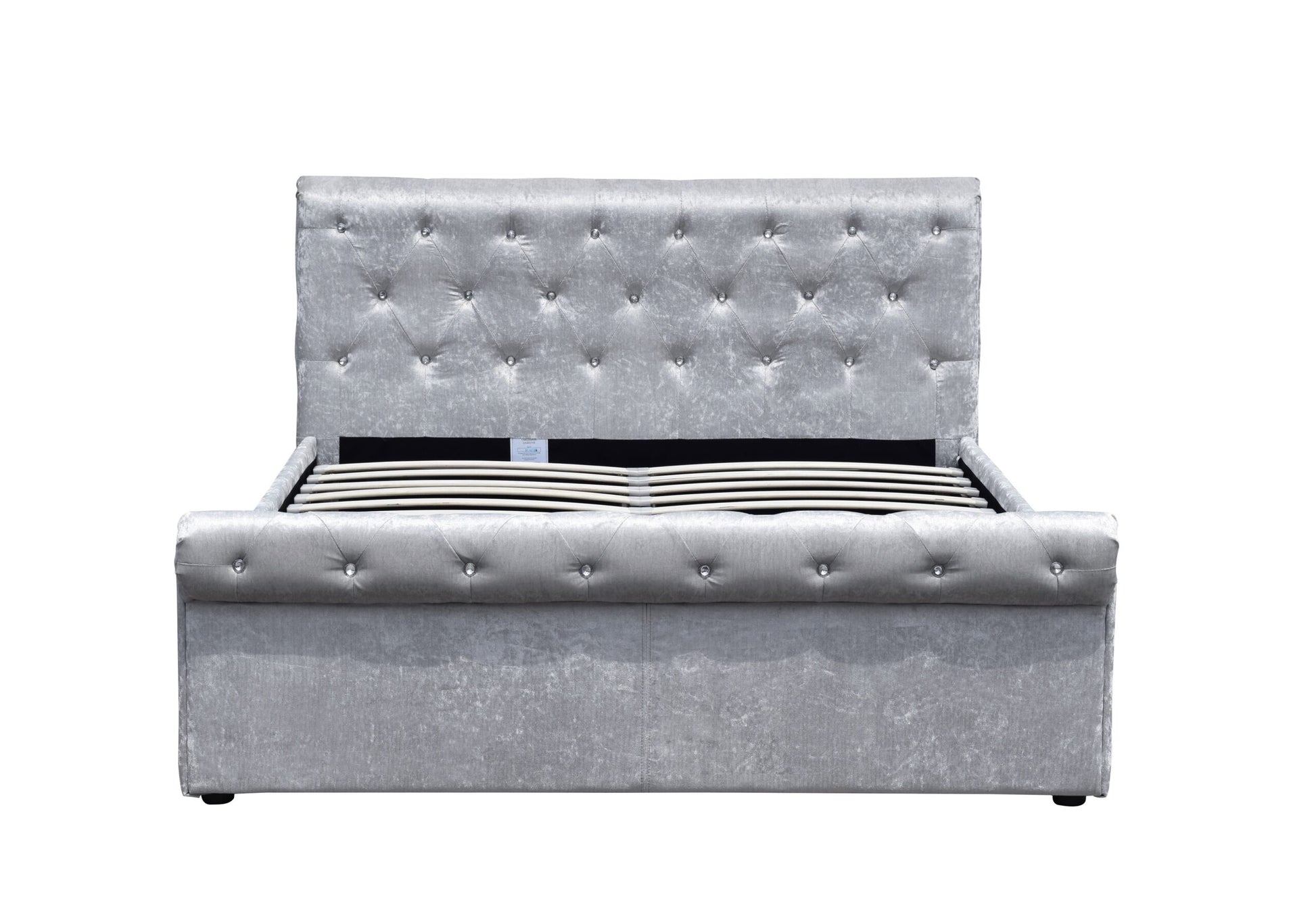 Werten Sie Ihr Schlafzimmer mit unserem Marseille Crushed Velvet Ottoman Sleigh Bettrahmen auf. Dieser luxuriöse Bettrahmen ist in 2 atemberaubenden Farben und 3 Größen erhältlich und verfügt über einen geräumigen Ottoman-Stauraum, der Ihrem Raum sowohl Stil als auch Funktionalität verleiht. Werten Sie Ihren Schlaf mit unserem fachmännisch gefertigten und gestalteten Bettrahmen auf. Der Marseille Crushed Velvet Ottoman Sleigh Bettrahmen ist eine schöne und praktische Ergänzung für Ihr Schlafzimmer und ist in verschiedenen Farben und Größen erhältlich, um zu jeder Einrichtung zu passen. Mit einem großzügigen Ottoman-Stauraum ist dieser Premium-Bettrahmen durchdacht auf Eleganz und Komfort ausgelegt. Unser Expertenteam hat diesen Bettrahmen sorgfältig entworfen und gestaltet, um ein unvergleichliches Schlaferlebnis zu bieten.