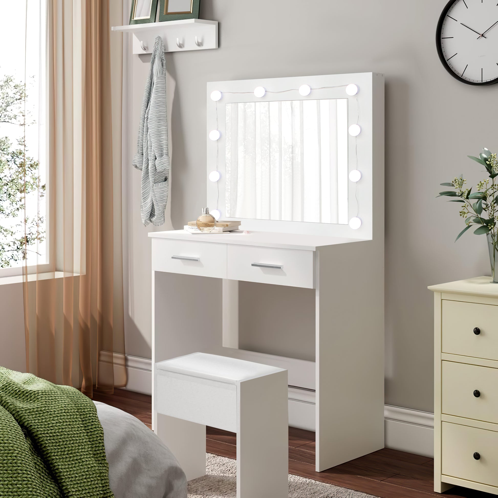 The spacious tabletop offers ample room for your beauty essentials, while two smooth-gliding drawers keep your makeup, jewellery, and accessories neatly organised. Paired with a matching cushioned stool, this set ensures comfort and sophistication as you get ready for the day or unwind in the evening.