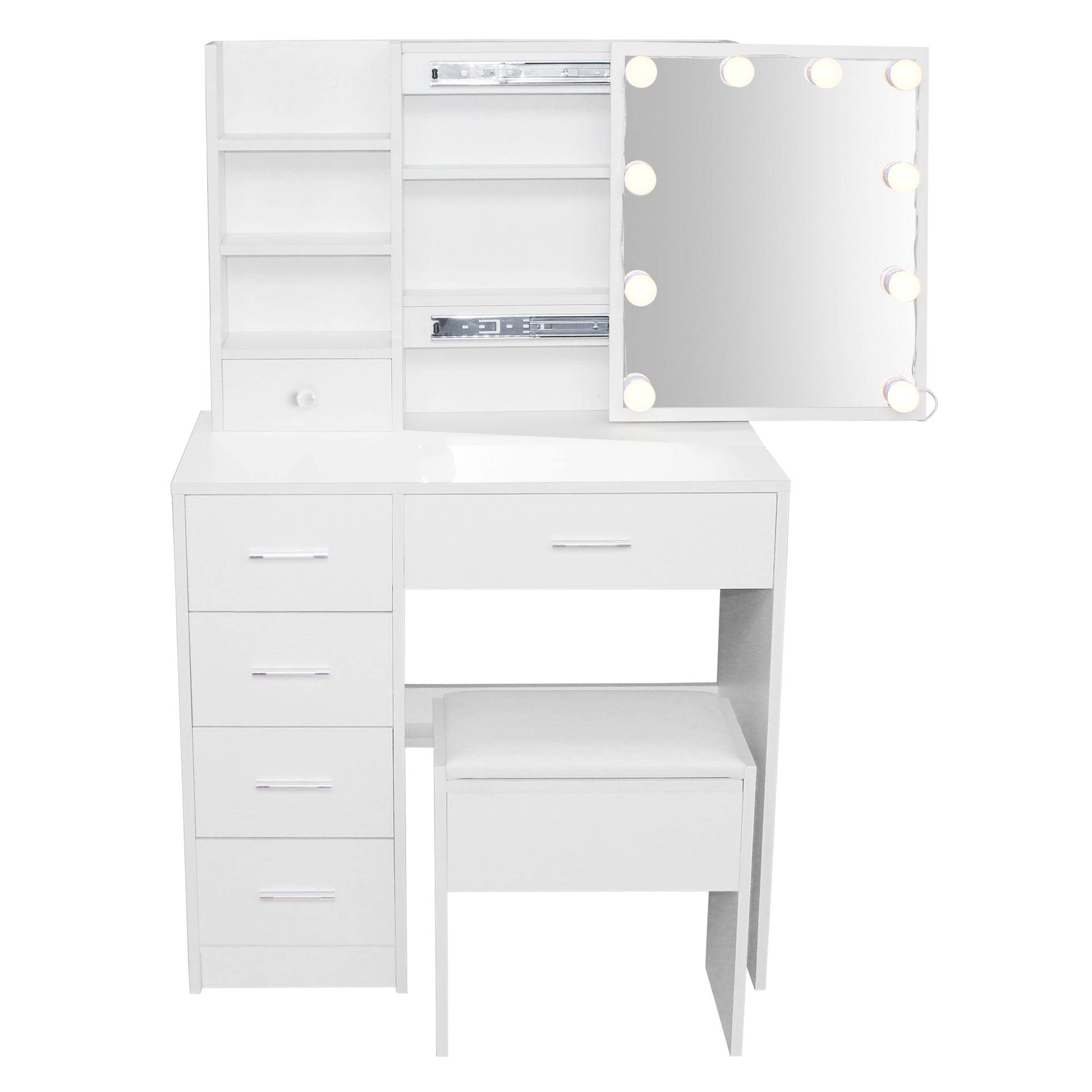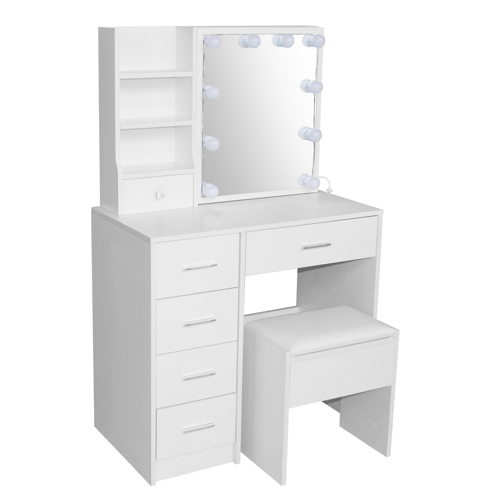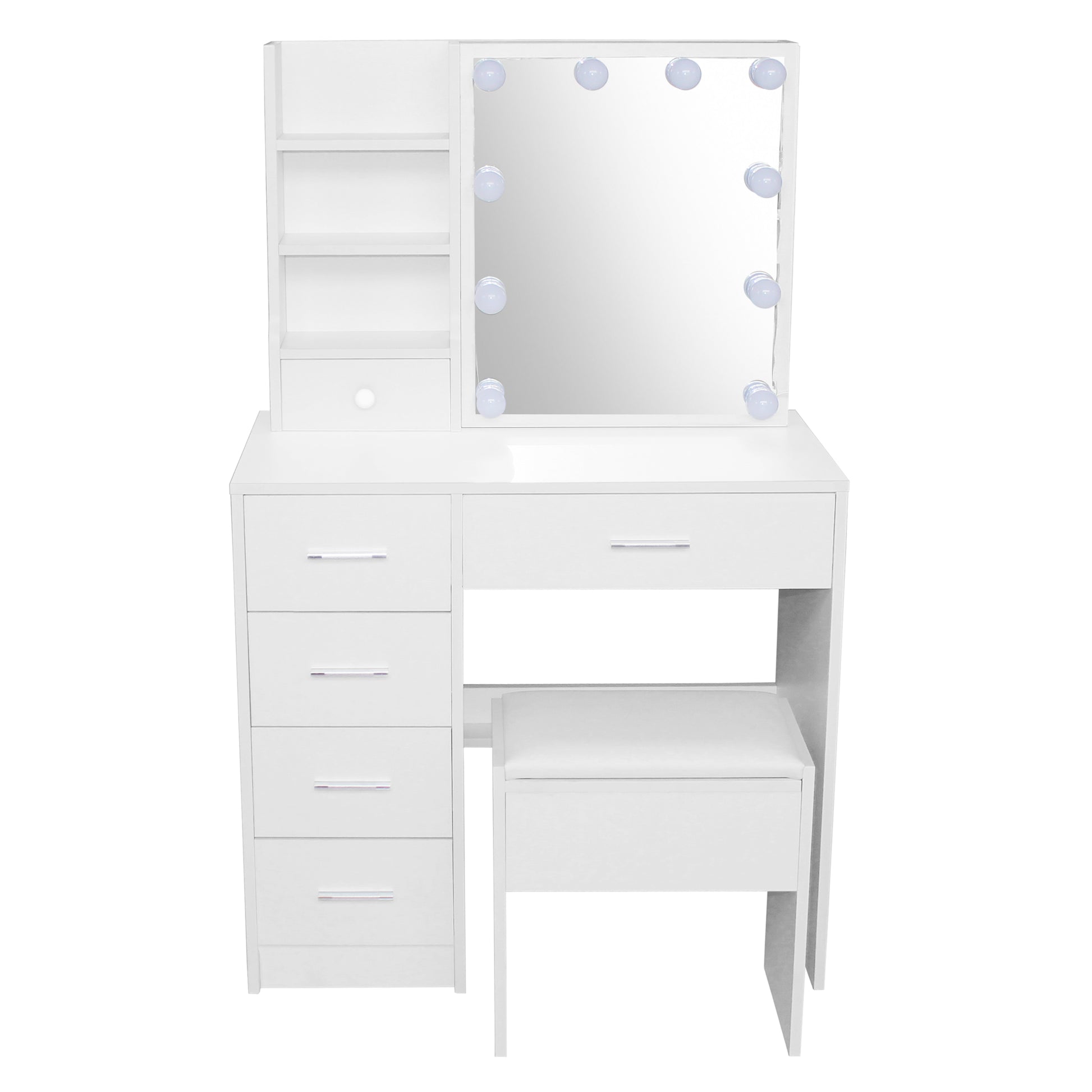 Crafted from durable, easy-to-clean materials, the Elsa 5-Drawer Sliding dressing table set is designed to blend seamlessly into modern and classic interiors alike.