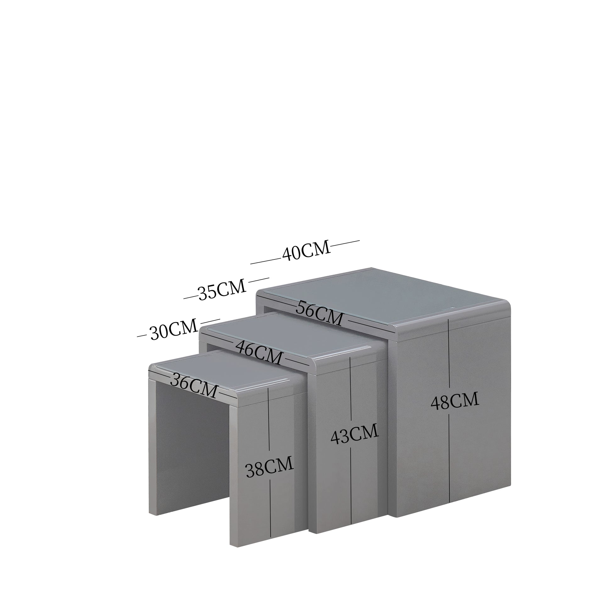 High Gloss Nest of 3 Tables White Or Grey Living Room Side End Table