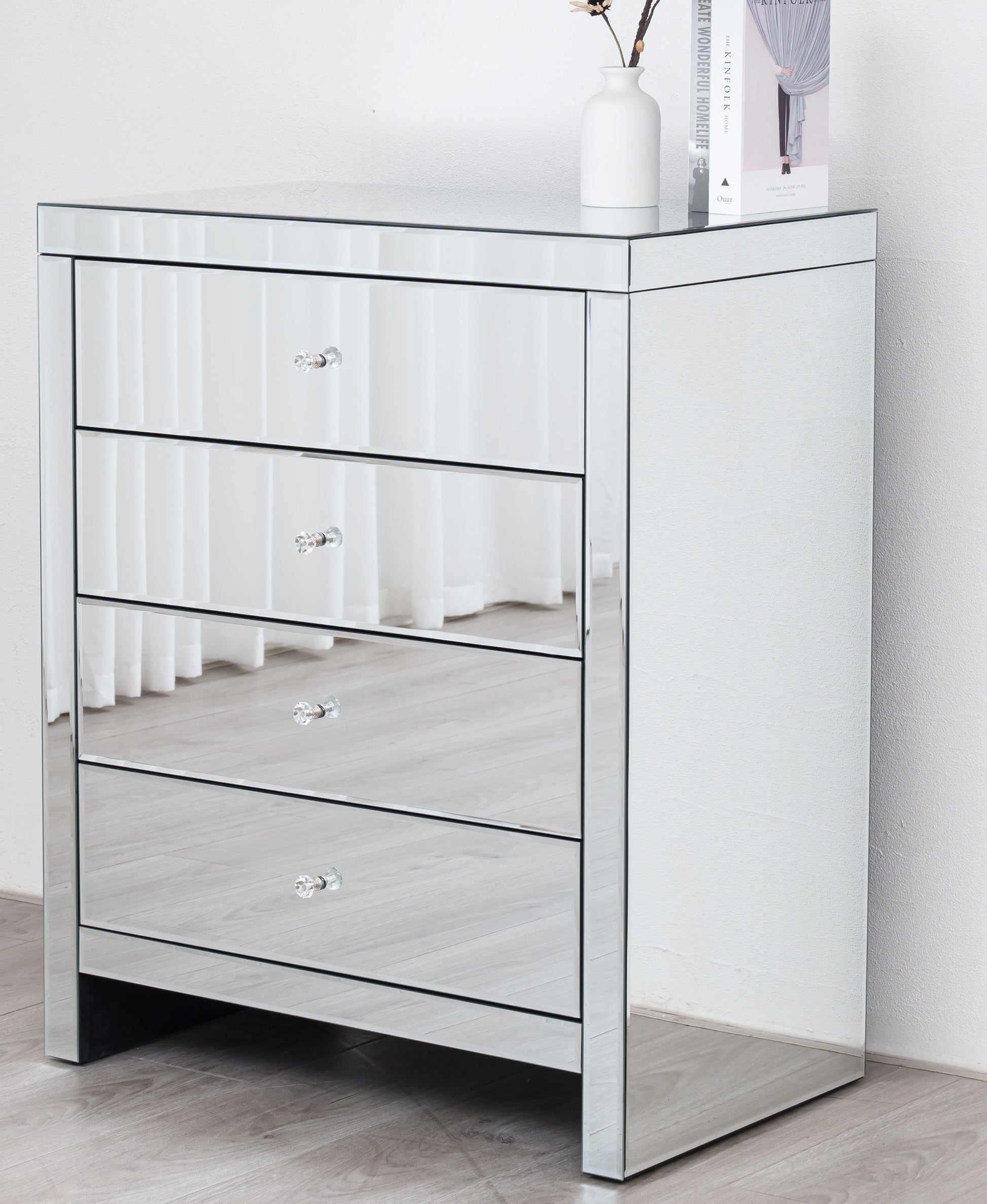 Mirrored 4 Drawer Chest Crystal Handles Bedroom Furniture